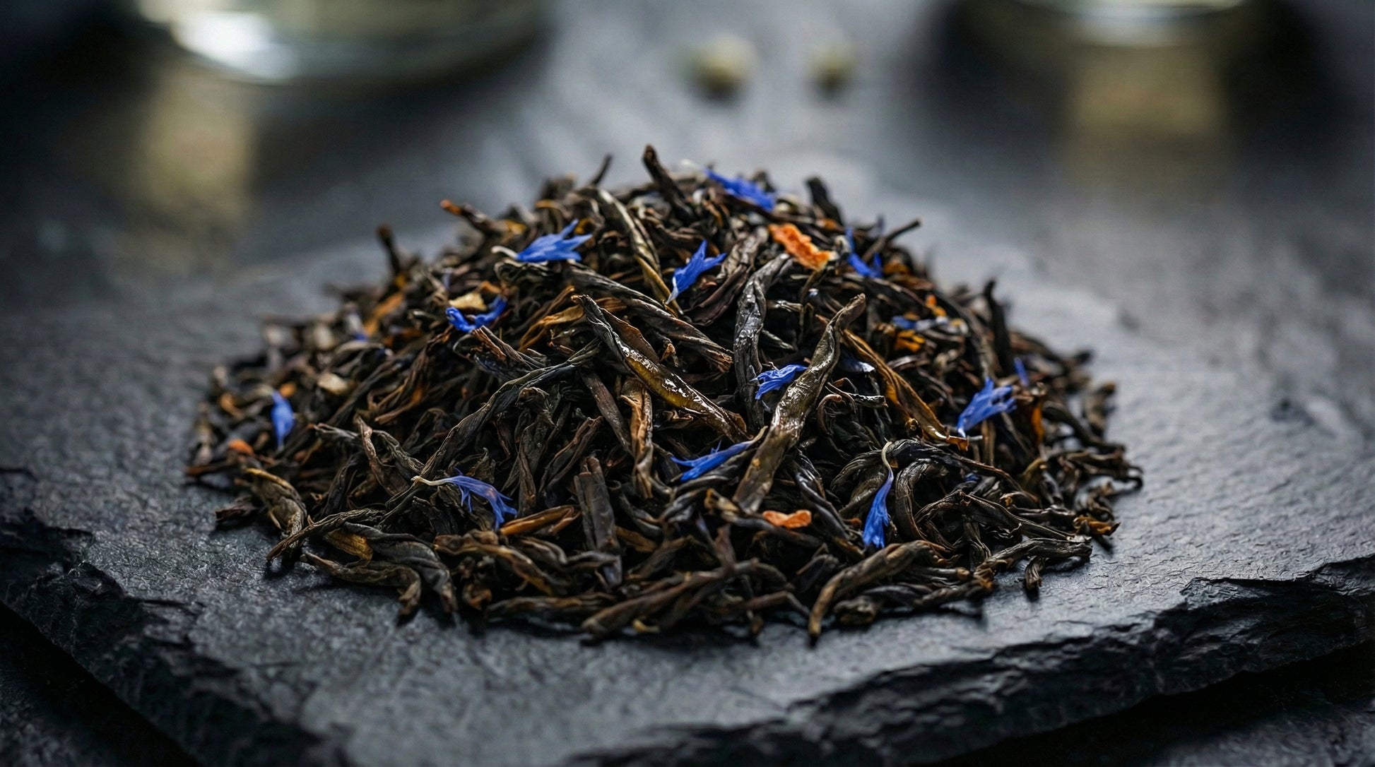 Premium Ceylon OP black tea is hand-blended with pure bergamot essential oil and delicate blue cornflowers. The bergamot is dosed with precision to impart bright citrus without overpowering the tea’s natural malt depth. Cornflowers lend a subtle floral lift and visual elegance. A timeless composition—refined, balanced, and enduring.